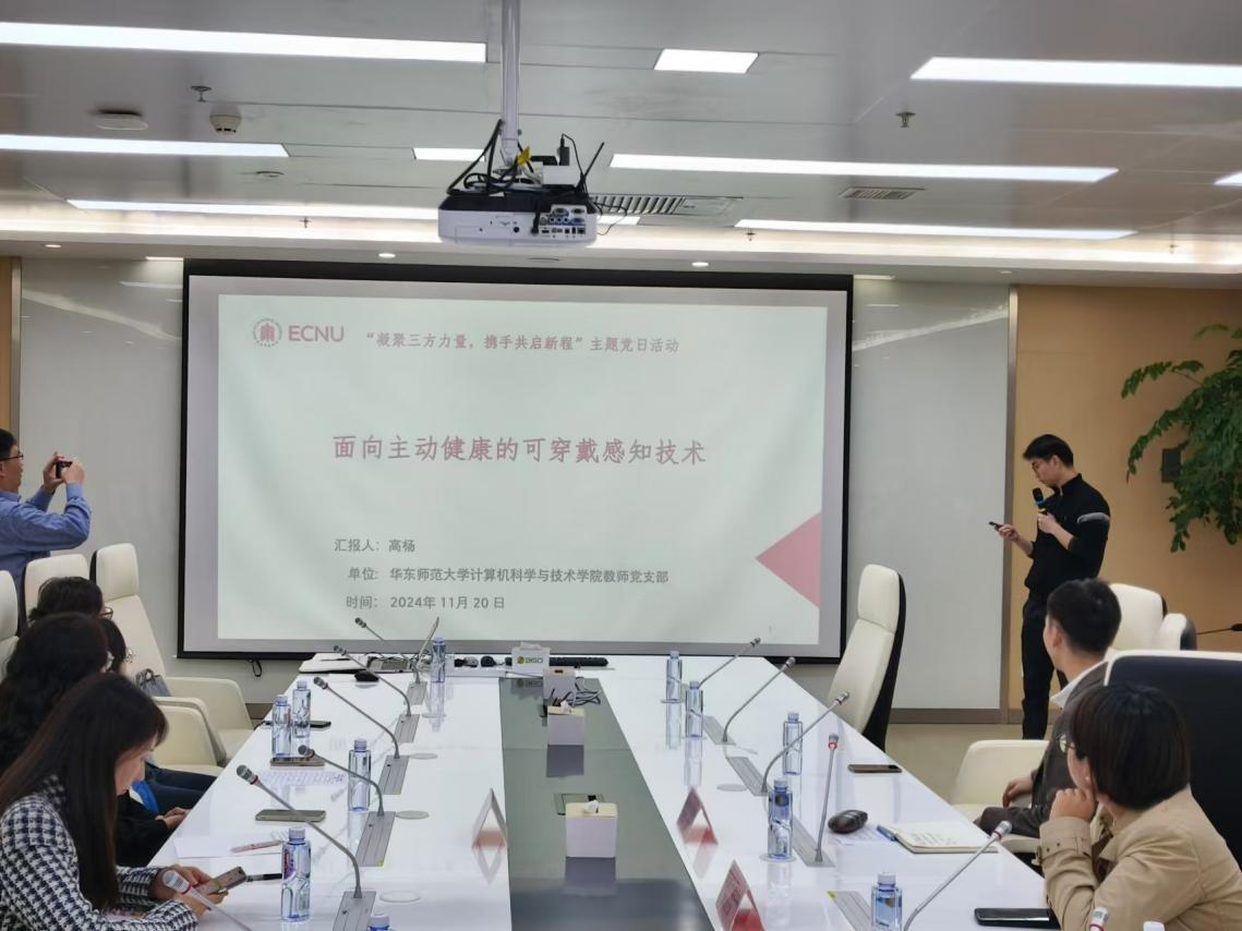 随后的交流座谈会上,来自91直播 教师第一党支部的青年研究员高杨,围绕“面向主动健康的可穿戴感知技术”这一主题进行了精彩的分享,展现了当前科技前沿的研究成果及其对社会发展的潜在贡献。此次分享不仅增进了双方对彼此领域最新进展的了解,也为后续的合作奠定了良好的基础。