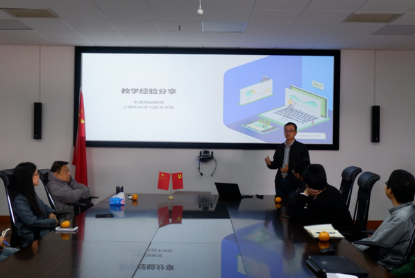 首先,各位新进老师进行了自我介绍。负责本科生学科基础课《数学分析》,有着多年教学经验的沈超敏老师进行了分享,他表示可以通过多种方式在严格谨慎的数学教学内容和灵活生动的教学方式中寻找平衡,如通过个性化设置增加上课点名趣味性,通过软件灵活教学增加数学学习的直观性、可理解性等等。