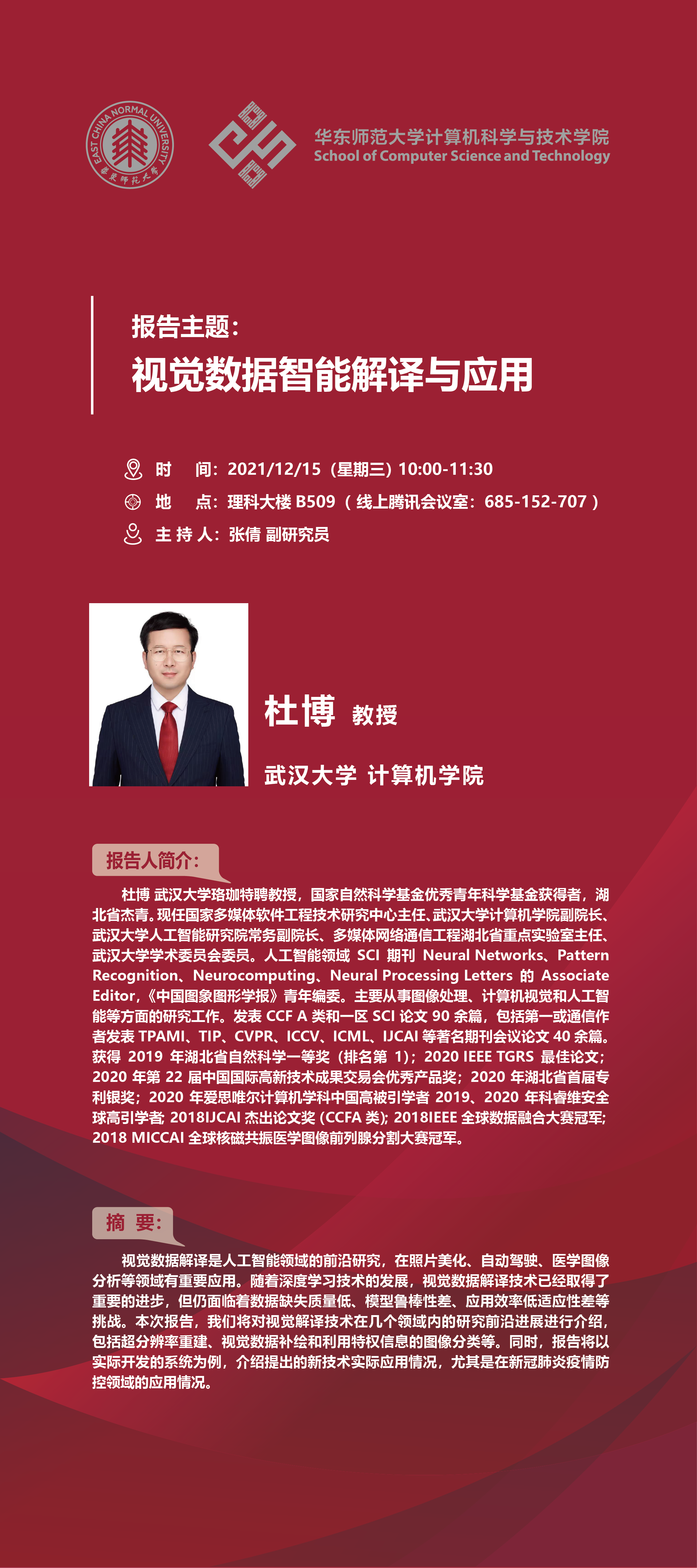 报告人:杜博 教授(武汉大学)