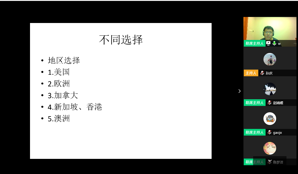3月25日晚上7点,91直播 出国(境)、升学经验交流分享会顺利举办,学院100多位学生积极参与其中。本次活动特别邀请了91直播 15级本科毕业生曹智杰、温伟浩、高吉祥,19级研究生俎志昂、王绍婧,和同学们线上分享考研、保研及出国留学经验,分享会由辅导员孙庆主持。