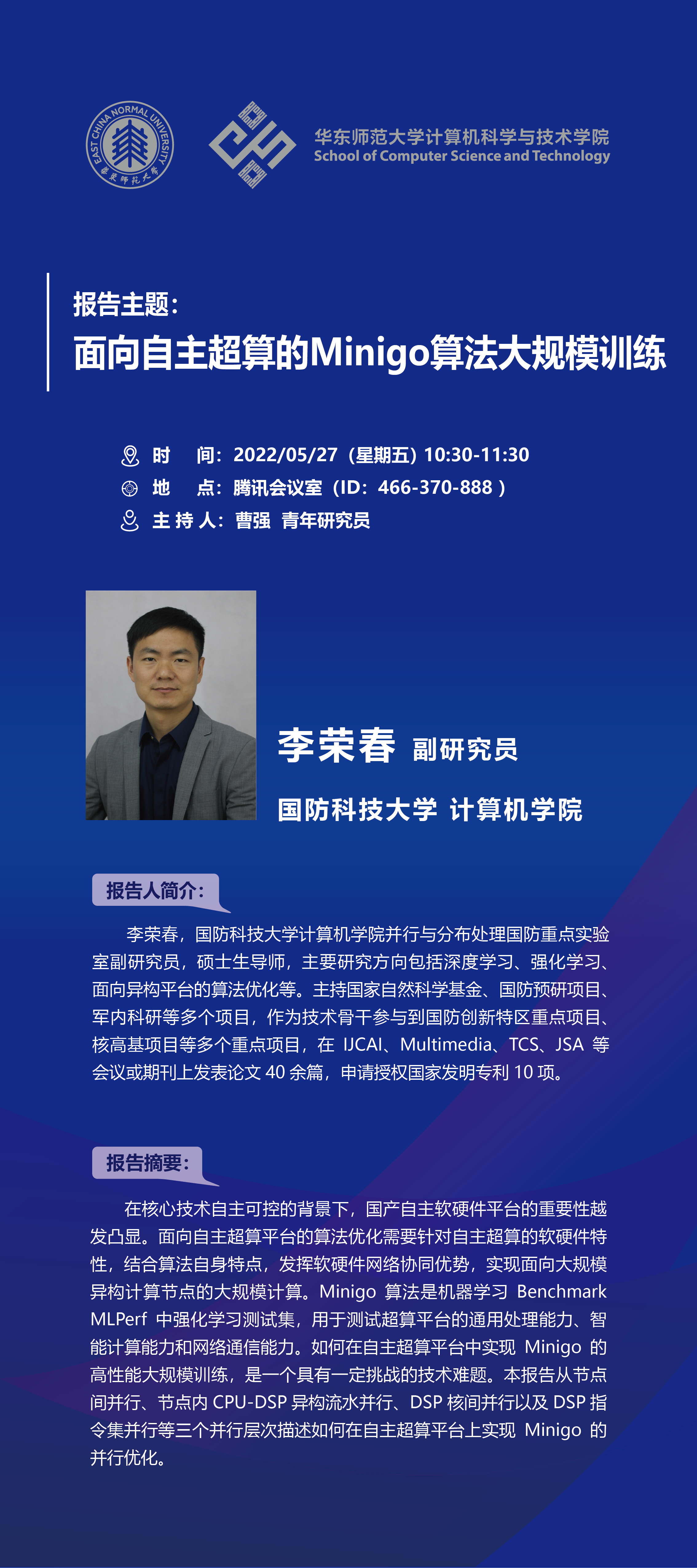 李荣春,GF科技大学91直播 并行与分布处理GF重点实验室副研究员,硕士生导师,主要研究方向包括深度学习、强化学习、面向异构平台的算法优化等。主持国家自然科学基金、GF预研项目、J内科研等多个项目,作为技术骨干参与到GF创新特区重点项目、核高基项目等多个重点项目,在IJCAI、Multimedia、TCS、JSA等会议或期刊上发表论文40余篇,申请授权国家发明专利10项。
