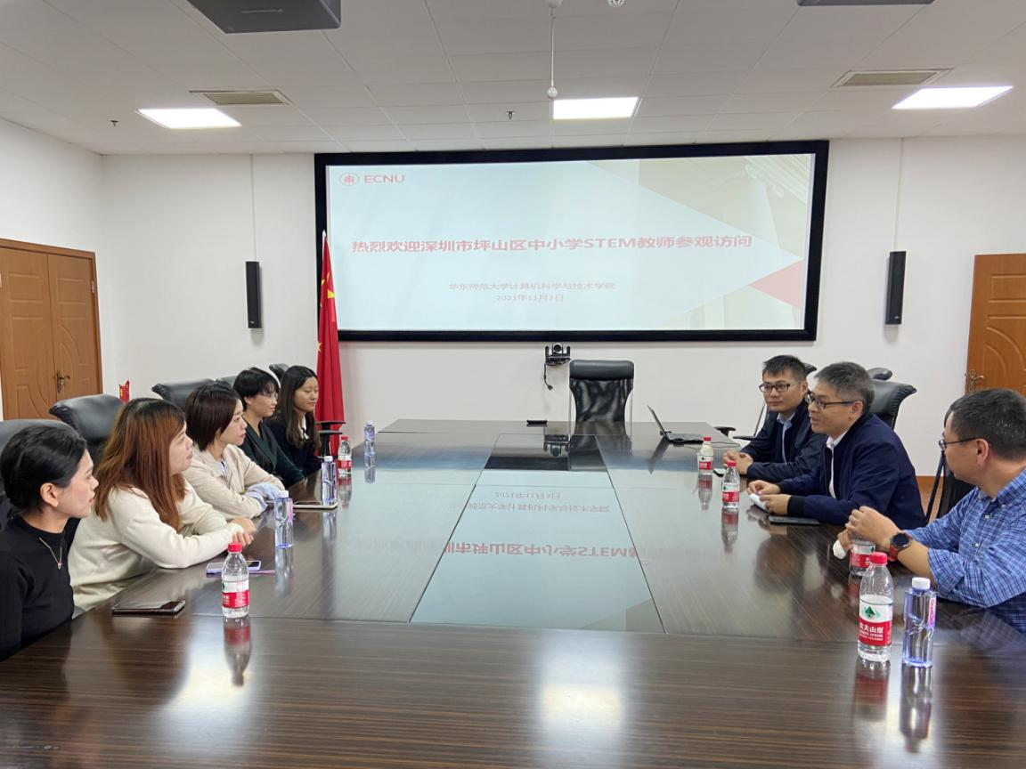 11月3日,张逸中校友携深圳市坪山区中小学STEM教师一行来我院调研智能教育前沿技术及应用情况,周爱民副院长(主持工作)等参与交流。