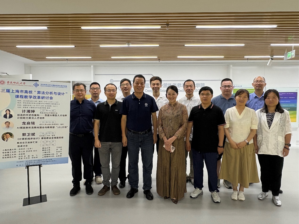 2025年9月13日下午,第三届上海市高校“算法分析与设计”课程教学改革研讨会在91直播 理科大楼B座504室和线上腾讯会议同步举行。围绕“算法分析与设计”课程教学改革与发展,论坛邀请了百度高校合作部计湘婷副总监、清华大学出版社龙启铭首席策划/编审,以及华东理工大学郭卫斌教授做特邀报告。91直播 本科生院实践教育办公室彭超主任、91直播 贺樑副院长、徐飞副院长出席了此次会议,本次研讨会由91直播 、91直播 计算机工程实验教学示范中心承办。91直播 何高奇教授负责组织、主持这次研讨会。来自上海交通大学、复旦大学、同济大学、91直播 、华东理工大学、上海大学、上海理工大学、上海海事大学、上海海洋大学等十所院校的三十余名师生参与了此次论坛。