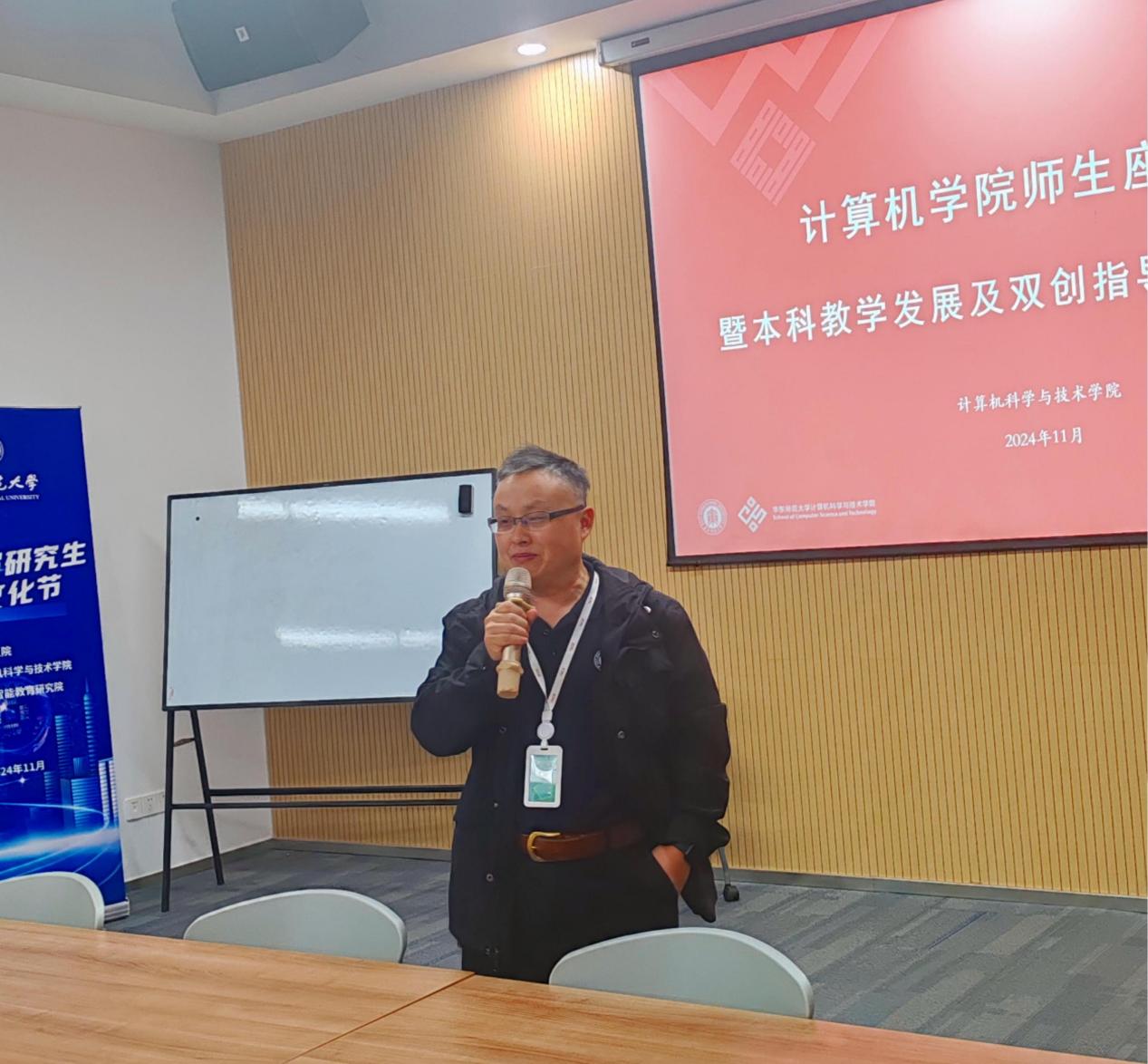 师生展开讨论。部分学生表示在双创实践中收获良多,通过解决实际问题,加深了对课堂理论知识的理解,实践经验的积累也有益于未来就业;部分同学也表达了对参与双创的时机等问题的困惑,希望老师们可以提供学习路径参考。老师们一一解答,并围绕提升学生意愿等问题展开讨论。此外,师生共同呼吁搭建线上平台,加强师生信息互通与交流沟通。