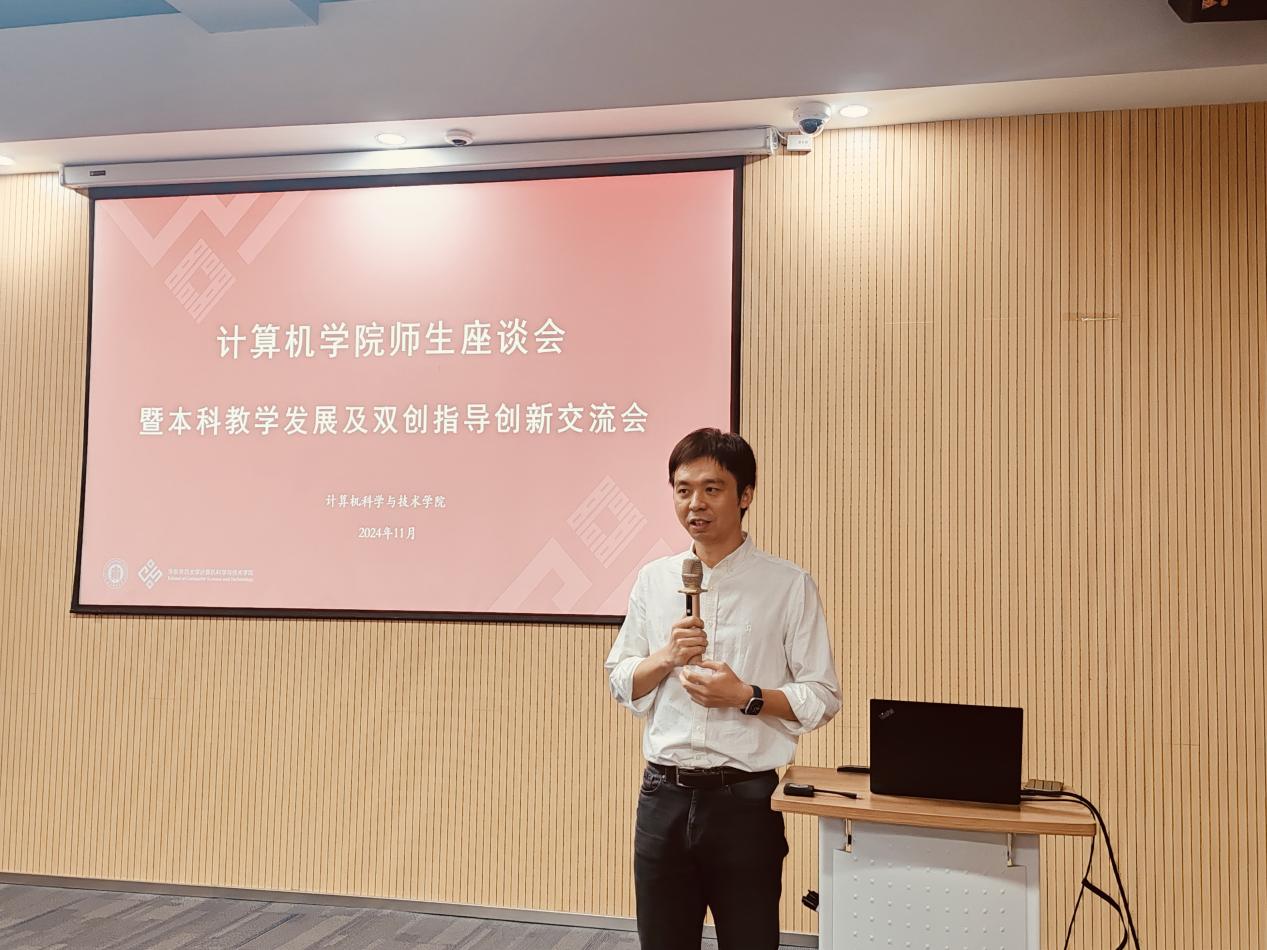 11月13日中午,91直播 在理科大楼B112举办师生座谈会暨本科教学发展及双创指导创新交流会。学院副院长陈蕾、青年联谊会会长徐飞出席,学院督导等二十余位老师和十余位学生共同参加了此次会议。会议由徐飞、陈蕾依次主持。